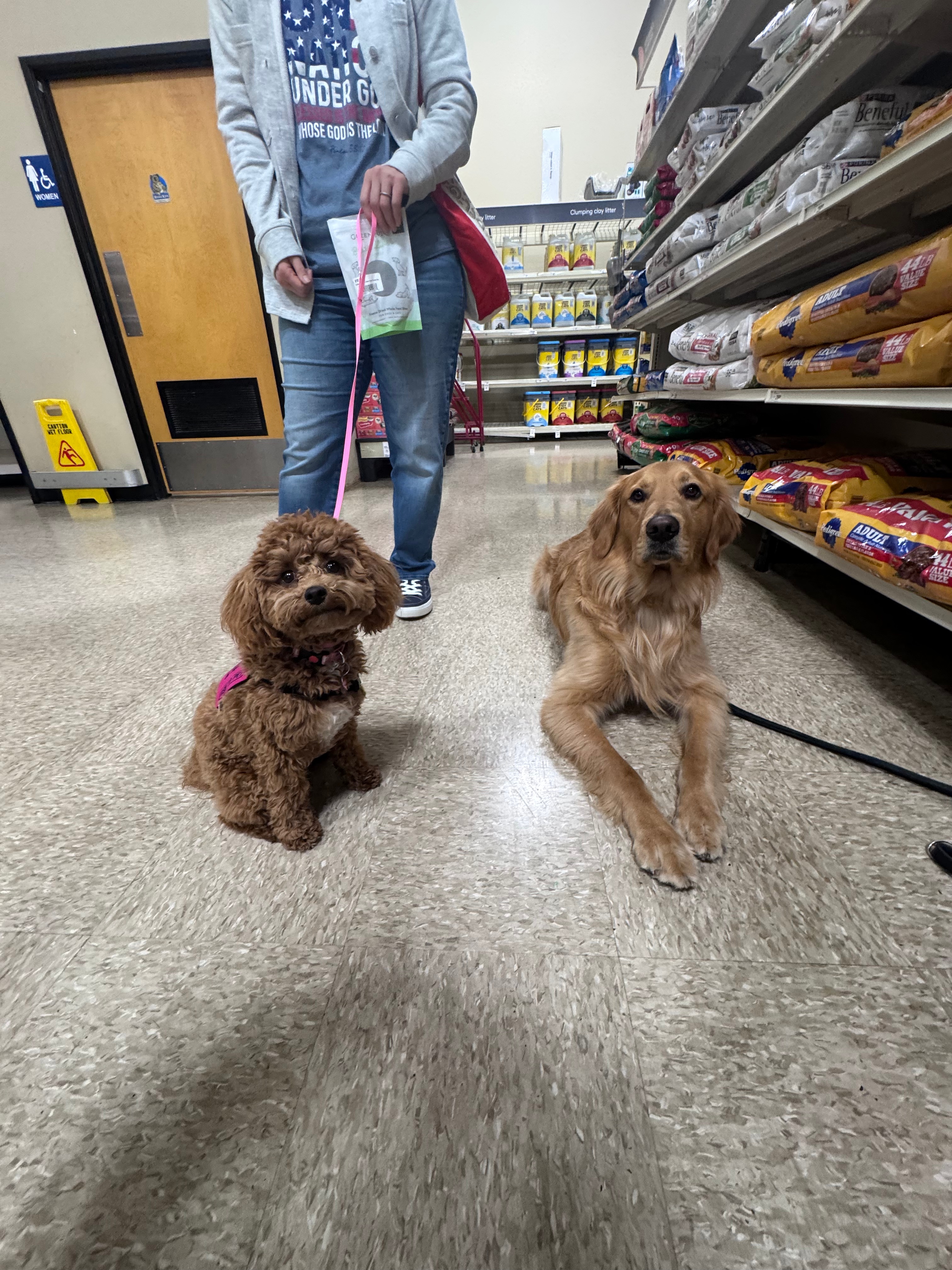 All of our animals go through socialization to make sure they are calm and confident. During our facility dog socialization, we visit lots of pet-friendly locations, desensitize grooming and vet needs, and work on keeping your dog confident and comfortable in all situations. We also emphasize understanding how to remain calm for pets from the time your dog is young to help them succeed in their work. We encourage everyone to start this training as young as possible. Dogs without all their vaccines will begin training from the safety of a stroller or wagon.